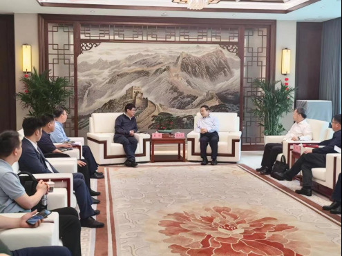 參觀結(jié)束,葛銳與天能控股集團(tuán)董事長(zhǎng)張?zhí)烊尉桶霾菏信c天能集團(tuán)戰(zhàn)略合作進(jìn)行座談,圍繞氫能汽車項(xiàng)目,雙方進(jìn)行了深入的交流,初步達(dá)成項(xiàng)目合作意向,雙方表示將進(jìn)一步推進(jìn)相關(guān)工作落實(shí)、盡快推動(dòng)相關(guān)項(xiàng)目落地。