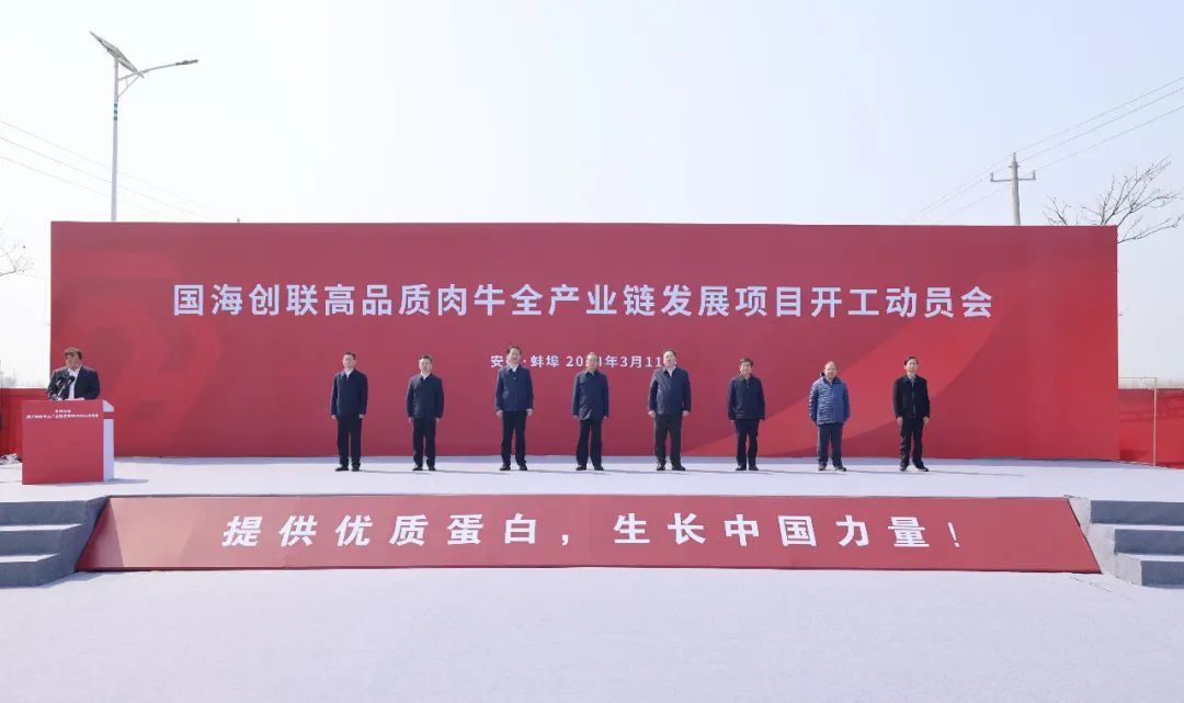 3月11日上午,國海創(chuàng)聯(lián)高品質(zhì)肉牛全產(chǎn)業(yè)鏈發(fā)展項(xiàng)目開工動(dòng)員會(huì)在懷遠(yuǎn)縣舉行。副省長張曙光宣布項(xiàng)目開工,市委書記黃曉武致辭,省政府副秘書長金宗順,省農(nóng)業(yè)農(nóng)村廳廳長汪學(xué)軍,省農(nóng)墾集團(tuán)總經(jīng)理張其廣,省農(nóng)業(yè)農(nóng)村廳副廳長湯洋,國海創(chuàng)聯(lián)實(shí)業(yè)集團(tuán)有限公司董事長閆濤,國家肉牛牦牛產(chǎn)業(yè)技術(shù)體系首席科學(xué)家曹兵海,市領(lǐng)導(dǎo)王慶武、吳永彬、喬樹偉,淮北市、亳州市、宿州市、阜陽市、淮南市、滁州市、六安市政府分管負(fù)責(zé)同志出席。蚌埠國控集團(tuán)黨委書記、董事長陳建功和集團(tuán)黨委副書記、副董事長、總經(jīng)理劉冰參加動(dòng)員會(huì)。