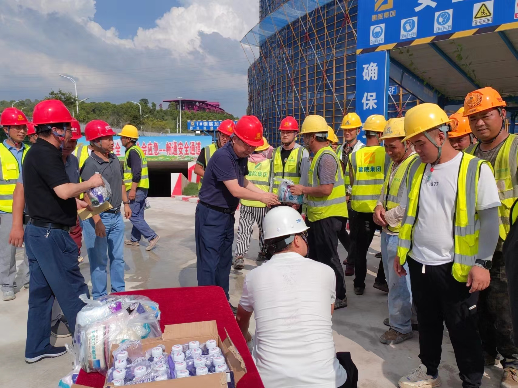 炎炎夏日送清涼,絲絲關(guān)懷暖人心。持續(xù)高溫悶熱天氣,給堅(jiān)守一線的職工帶來了嚴(yán)峻“烤”驗(yàn)。為切實(shí)做好抗高溫防暑降溫工作,有效防控高溫中暑事件和安全生產(chǎn)事故的發(fā)生,切實(shí)維護(hù)廣大職工的勞動(dòng)安全和健康權(quán)益,按照市國控集團(tuán)黨委、市國控集團(tuán)工會(huì)的統(tǒng)一部署,7月25日-7月26日,集團(tuán)黨委書記、董事長陳建功,黨委副書記、副董事長、總經(jīng)理劉冰,黨委委員、副總經(jīng)理翁暢等分別帶隊(duì)走訪慰問了建筑科創(chuàng)中心項(xiàng)目部、新二中站點(diǎn)、幸福河湖項(xiàng)目部、馬城糧庫,為堅(jiān)守在一線的項(xiàng)目員工送上毛巾、香皂、清涼油等慰問品,對(duì)大家的辛苦付出表示感謝,對(duì)一線職工不畏高溫、堅(jiān)守崗位、拼搏奉獻(xiàn)的精神表示贊揚(yáng),同時(shí)叮囑大家要努力克服高溫天氣帶來的困難和挑戰(zhàn),注意防暑降溫,做好自身防護(hù),確保各項(xiàng)工作安全有序推進(jìn)。