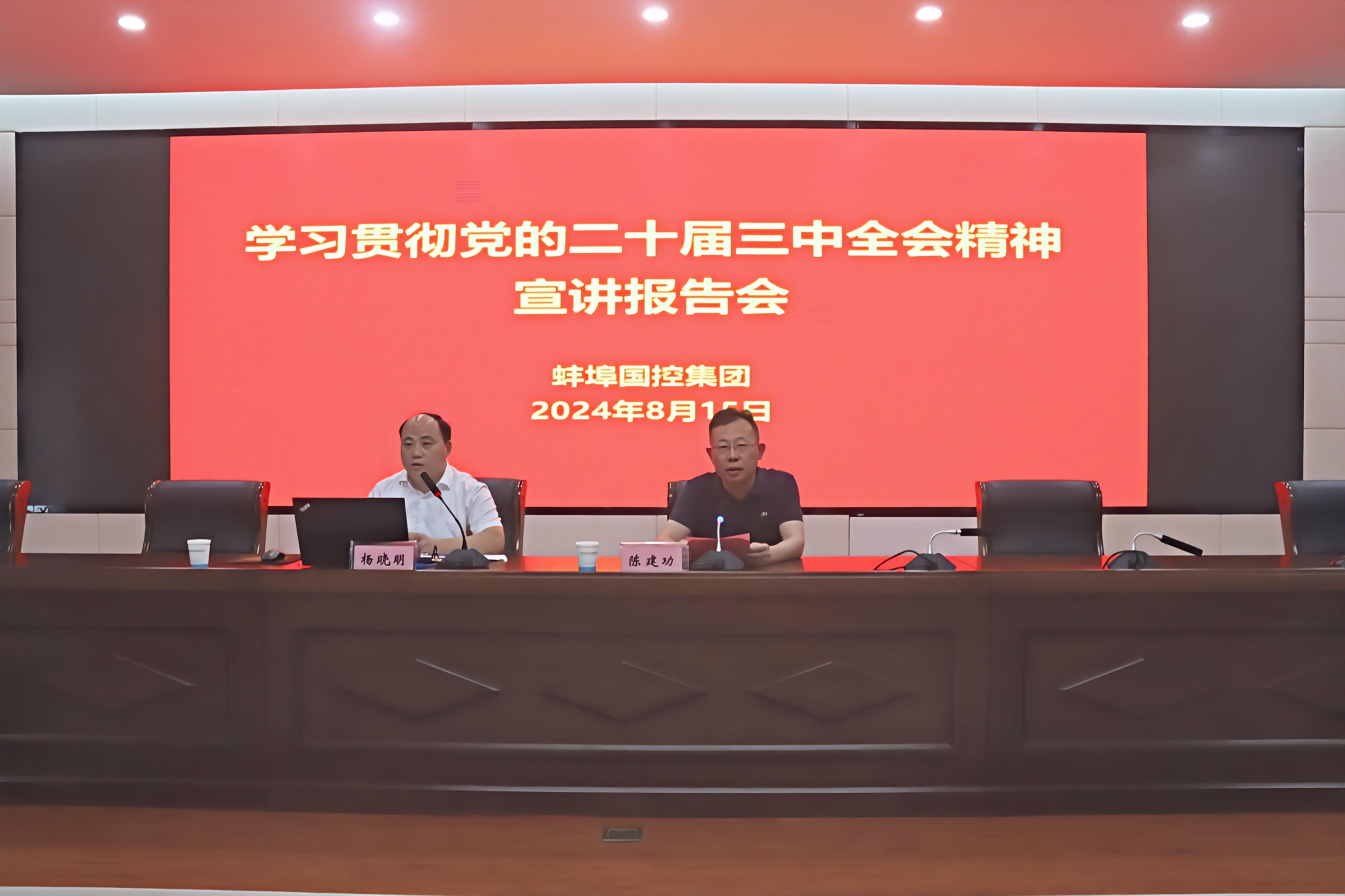 為認(rèn)真學(xué)習(xí)宣傳貫徹黨的二十屆三中全會精神,推動落實國有企業(yè)改革發(fā)展新任務(wù)新要求,8月15日下午,市國控集團(tuán)舉辦學(xué)習(xí)貫徹黨的二十屆三中全會精神宣講報告會,會議邀請市委副秘書長、市委政研室主任楊曉明作主題宣講,集團(tuán)黨委書記、董事長陳建功主持會議并講話。集團(tuán)領(lǐng)導(dǎo)班子成員、部門負(fù)責(zé)人,所屬子公司領(lǐng)導(dǎo)班子成員和基層黨組織書記代表共計88人參加會議。
