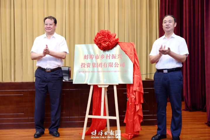 會上,市委副書記、懷遠縣委書記王慶武,副市長吳永彬共同為蚌埠市鄉(xiāng)村振興投資集團有限公司揭牌。
