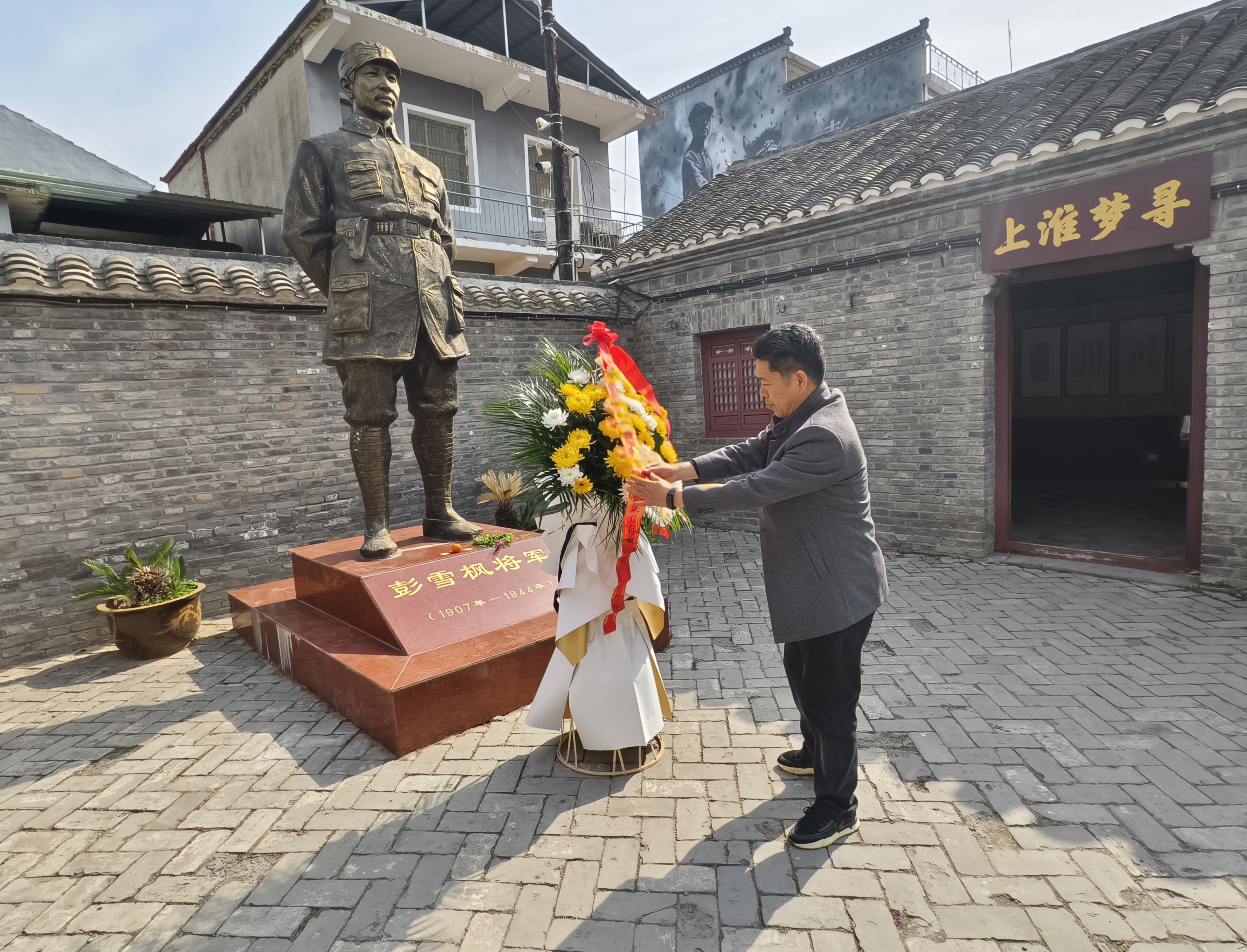 參觀結束后,全體黨員來到彭雪楓將軍銅像前肅立默哀。向革命烈士敬獻花籃,表達對革命先烈的崇高敬意。