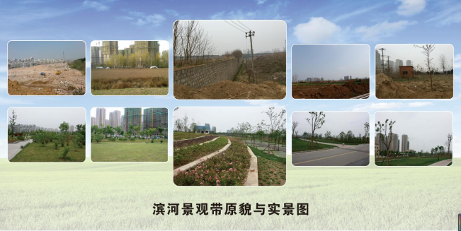 該項(xiàng)目位于蚌埠市淮上區(qū),南起淮北大堤堤頂,北至濱河路邊,為狹長(zhǎng)型地塊,東西長(zhǎng)約4.3公里,綠地景觀面積49萬平方米。項(xiàng)目建設(shè)之前,地塊上有附近村民自種的莊稼、小菜園,也有野生的雜草灌木,景色荒蕪蕭條。2013年,市委市政府要求對(duì)淮河北岸進(jìn)行環(huán)境整治,為人民群眾提供一個(gè)環(huán)境優(yōu)美,悠閑舒適的休閑場(chǎng)所,由城開公司負(fù)責(zé)項(xiàng)目建設(shè)。該項(xiàng)目采用工程總承包中設(shè)計(jì)施工一體化(DB)模式招標(biāo),由中標(biāo)人負(fù)責(zé)項(xiàng)目的設(shè)計(jì)施工。2014年11月完成項(xiàng)目的建設(shè)任務(wù),為廣大市民營(yíng)造了一個(gè)以人為本的現(xiàn)代濱河休閑公園、綜合性景觀走廊,綠化植物有銀杏、香樟、桂花等,植物層次豐富,物種多樣,四季變化繁復(fù),覆蓋率在90%以上,展現(xiàn)了林成蔭、樹成群、草成片、花成叢的優(yōu)美景觀。